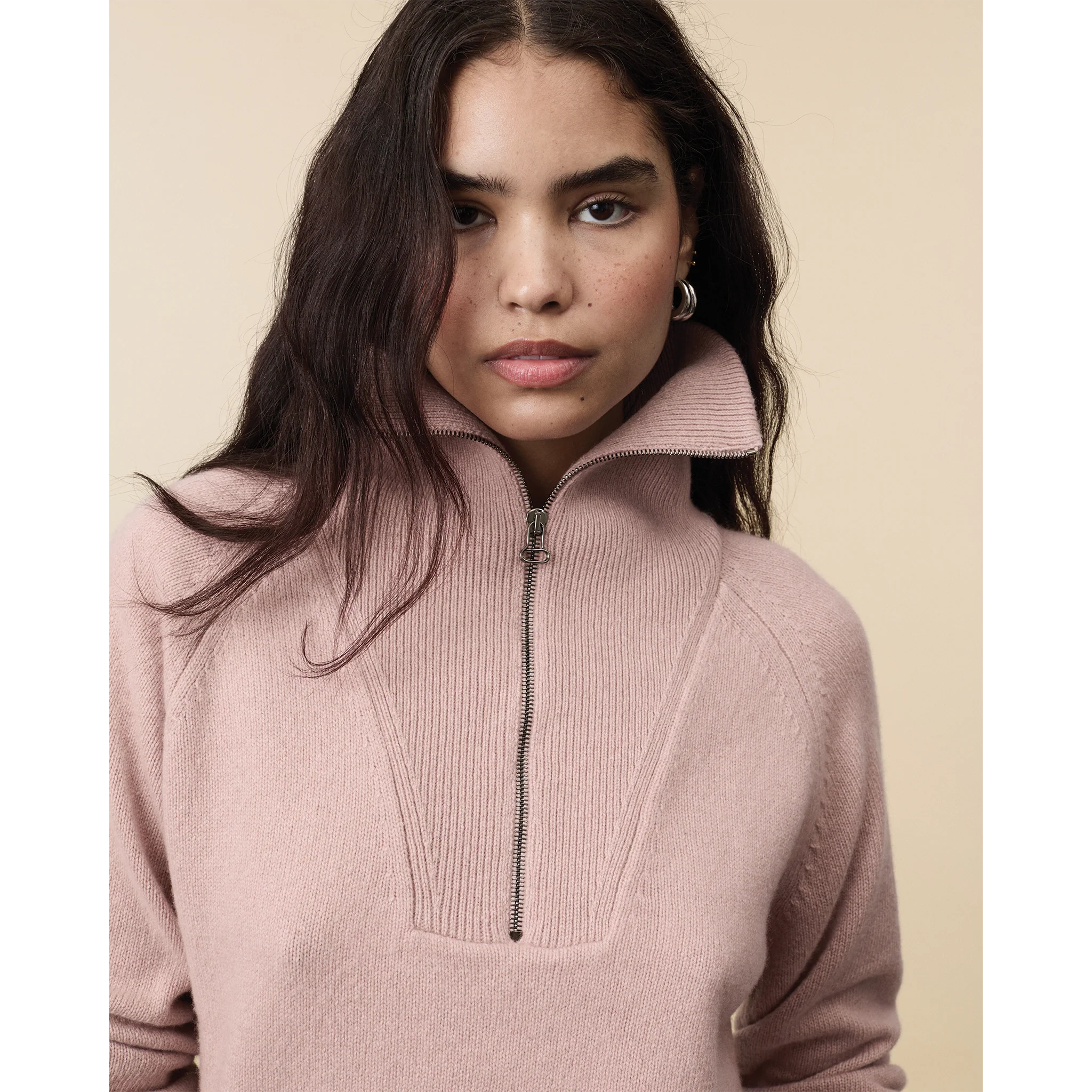 Knitted in dense, soft cashmere, the zip‑neck sweater reinterprets a sportswear essential with a modern twist. Worn open for a relaxed attitude or zipped for a sharper line, it stands out with its oversized cut and boxy volume. Designed to last, it blends comfort and modernity — a timeless piece you’ll never tire of